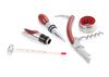 Caja de vino en madera con espacio interior y accesorios metálicos: termómetro, tapón y sacacorchos. Una propuesta sobria y decorativa.