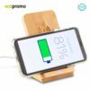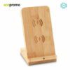 Cargador inalámbrico de 5W elaborado en bambú. Compatible con dispositivos de hasta 7″. Permite carga vertical u horizontal. Incluye cable y empaque individual.