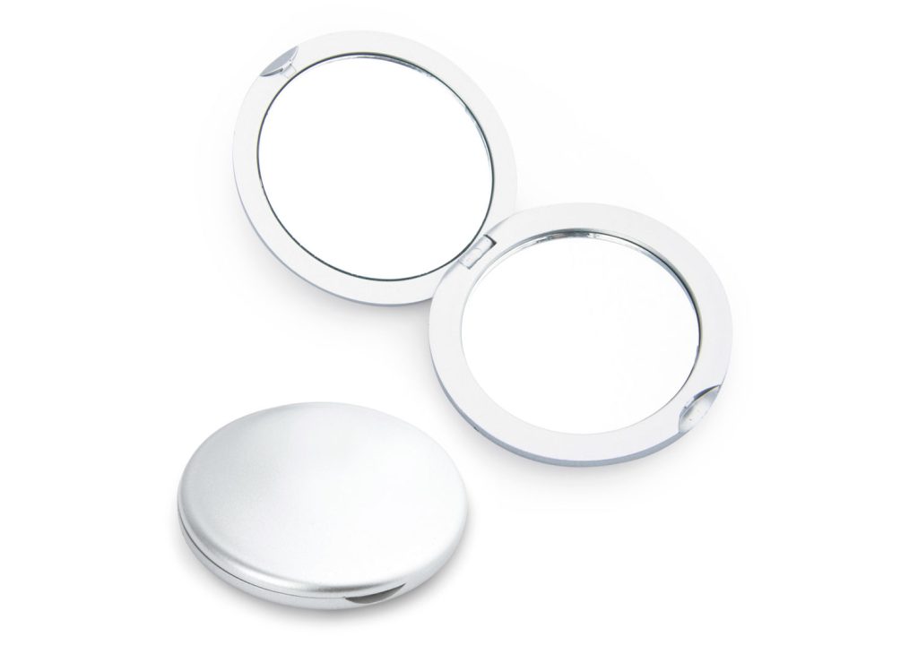 Espejo doble de aumento y vista normal, con estructura redonda en tonos translúcidos. Perfecto para retoques rápidos o uso personal diario.