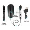 Luz frontal para bicicleta con bocina integrada. Posee tres modos de iluminación, 250 lúmenes de potencia y sonido de 120 decibeles. Recargable mediante batería de litio de 1200 mAh.