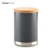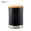 Mug térmico de acero inoxidable con tapa en bambú natural y doble pared aislante. Diseño moderno y resistente. 400 ml.