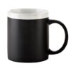 Mug cerámico tipo pizarra para escribir con tiza. Incluye tiza blanca. Apto para microondas y lavavajillas. Superficie mate con ligeras irregularidades propias del material. 11 oz.