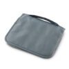 Organizador de viaje en poliéster con compartimiento de malla, bolsillo en PVC transparente y gancho metálico para colgar. Cierre con velcro. Práctico y resistente.