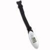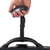 Balanza portátil de plástico con correa de sujeción y pantalla digital. Capacidad máxima: 40 kg. Incluye batería.