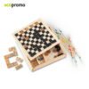 Set de juegos clásicos en caja de madera, que incluye ajedrez, dominó y palillos. Ideal para compartir en casa o durante viajes.