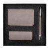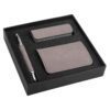 Set tecnológico con batería portátil de 2.600 mAh, bolígrafo táctil y tarjetero en cuero sintético. Presentación en caja de regalo con acabado metálico.