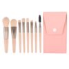 Set de ocho pinceles ultra suaves con mangos de madera y estuche en cuerina. Ideal para crear diferentes estilos de maquillaje con precisión.
