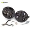 Set de 24 herramientas con estuche de bambú y cierre a presión. Incluye piezas básicas para reparación y ajuste. Presentación individual.