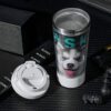 Vaso viajero con sistema antiderrame y base adherente. Fabricado en material resistente para bebidas calientes o frías. 400 ml.